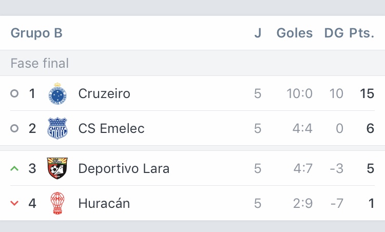 En el grupo B de Emelec ya está clasificado Cruzeiro (BRA) y se disputa el otro cupo entre los guayaquileños y Deportivo Lara. Mientras que en grupo D de Liga de Quito no hay ningún clasificado y se diputa el pase a octavos de final entre los albos, Peñarol (URU) y Flamengo (BRA).