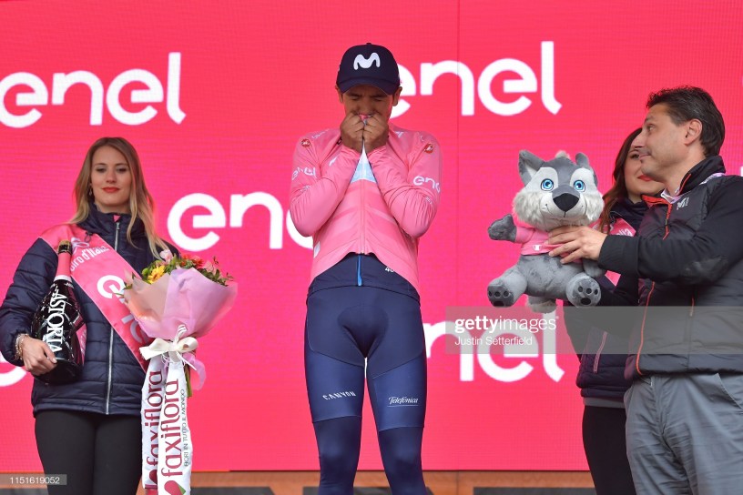 Carapaz logró ganar su tercera etapa en el Giro de Italia y es la primera vez que logra dos victorias consecutivas en la misma edición de una Gran Vuelta. También es la primera vez en que un ecuatoriano se enfunda la malla distintiva en una Gran Vuelta.